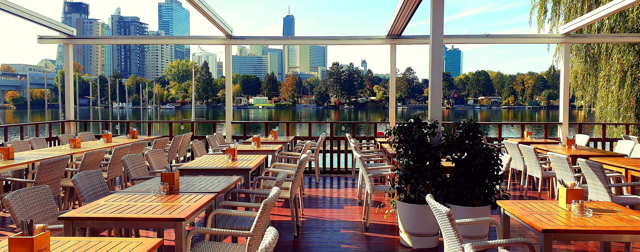 Wir freuen uns, dass Sie zu uns gefunden haben. Genießen Sie köstliche Speisen und erfrischende Getränke, während Sie den einmaligen Ausblick auf die Skyline Wiens erleben, direkt am Wasser.